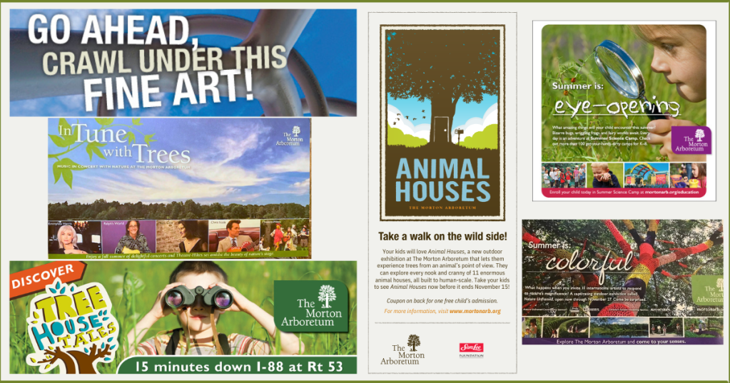 Former employer. Our stellar marketing department, of which I was the Marketing Manager, completed more than 600 projects annually for this expansive tree museum. Our team collaborated throughout the organization to create marketing, fundraising, and educational campaigns and collateral (digital, print, OOH, broadcast). We were responsible for guarding and implementing the carefully articulated and beautifully crafted Morton Arboretum brand. Whether a digital ad campaign or a soil science brochure, we ensured each initiative was on brand and on target with the intended audience. I am particularly proud of my role in our integrated marketing campaigns for major outdoor art exhibitions, summer concert series, and seasonal attractions. These initiatives resulted in record-setting traffic and revenue. Are you already thinking about ways I can help you achieve your ambitious goals? Let’s talk.